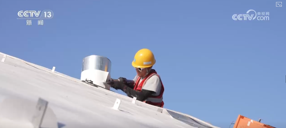 在管庄东里小区改造现场,因为有了这种钢屋顶,现在还可以在屋架内填充高性能保温材料,使住户冬季的室内温度提升2—3摄氏度。