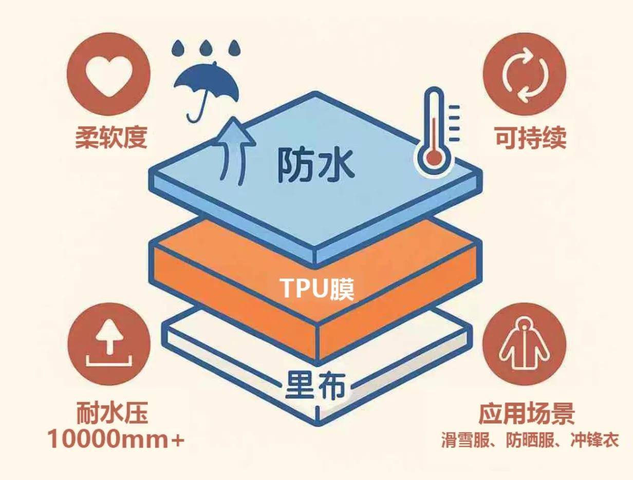 如今,TPU薄膜早已不止应用于校服,从运动鞋的气囊、户外服装的防水涂层,到医疗器材、环保包袋,都能看到它的身影。下次再看到校服里的这层薄膜,就知道它不是多余的“塑料片”,而是默默守护孩子的“隐形防护盾”啦~