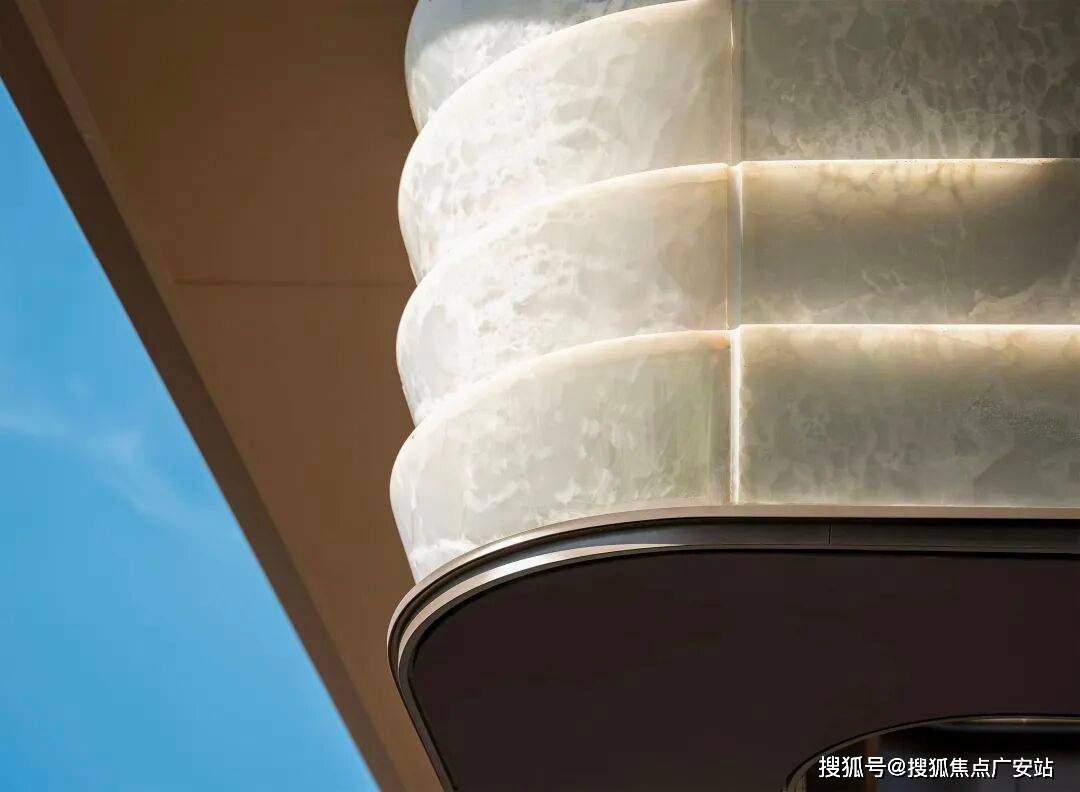 而西入口门头的设计灵感,则取自张江地标“科学之门”的金色塔冠,远远望去,像一个精致的“玲珑宝盒”。