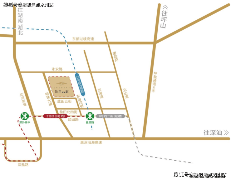 项目交通配套;地铁8号线号线(规划中)双轨交汇枢纽盐田路站;武深高速、惠深沿海高速、东部过境高速、坪盐通道(在建)等高速路网环伺;独享三大口岸、水上停机坪等便捷交通;海陆空轨便捷通勤,轻松执掌深港双城繁华。