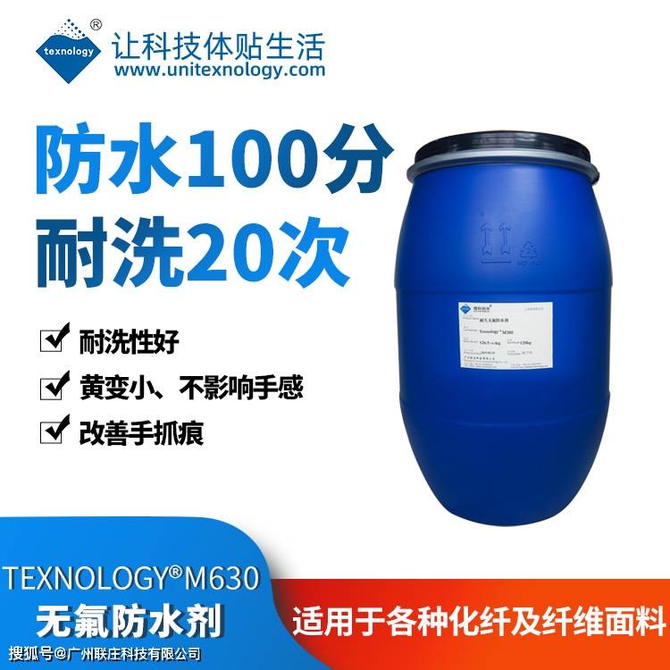 Texnology®M630这类以高性能聚氨酯聚合物组成的无氟防水剂,其防拨水、防虹吸性能更为优越,因此常用于鞋面材料或是织带、纱线、防水缝纫线等辅料的耐久防水、防虹吸整理中。