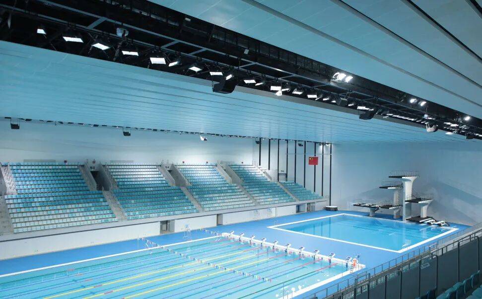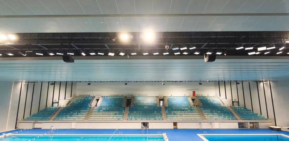 游泳跳水馆建筑面积约5.5万平方米,设有跳水池、比赛池、训练池、戏水池4片功能泳池,可承办游泳、跳水、花样游泳、水球等各类国内外赛事。相较于综合体育馆,游泳跳水馆内水汽充足、湿度更高,对音频设备的防潮性、稳定性要求更为严苛,同时需保障观众席及比赛区域均能获得清晰、均匀的声音覆盖。